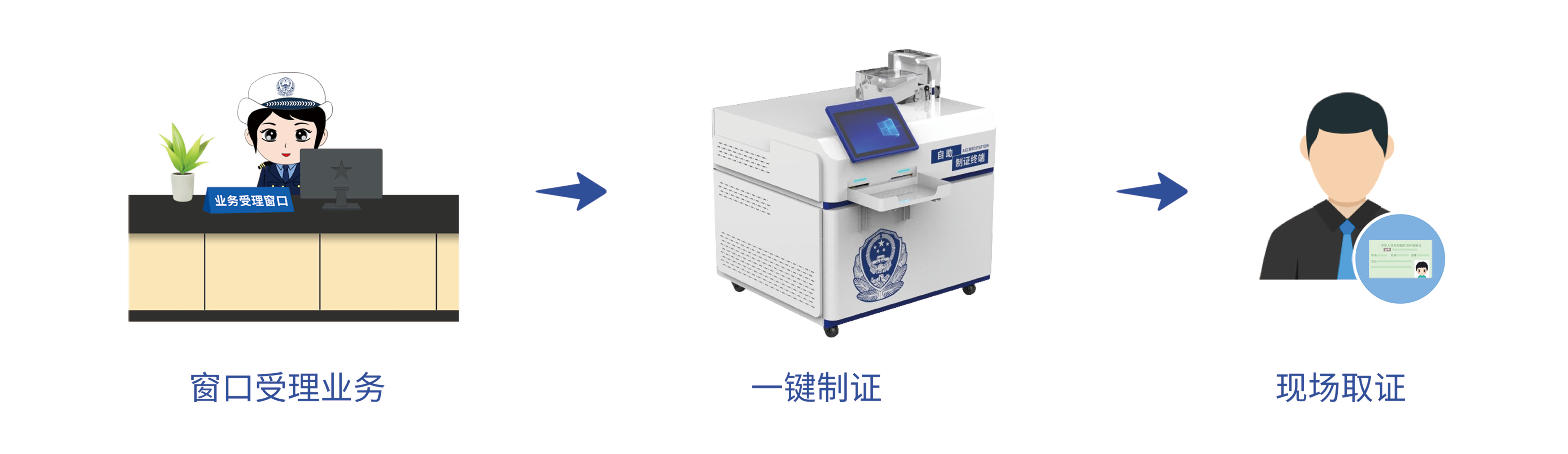 解决传统人工制证的繁杂工序,群众立等可取,解决群众多次往返车管所等问题